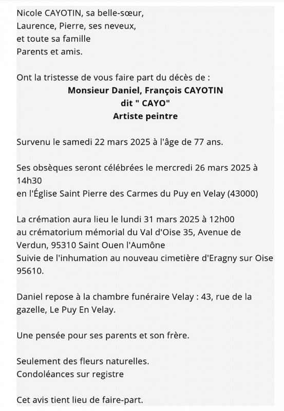 Une cérémonie aura lieu le 16 Août à 9h au crématorium de La Seyne-sur-Mer.